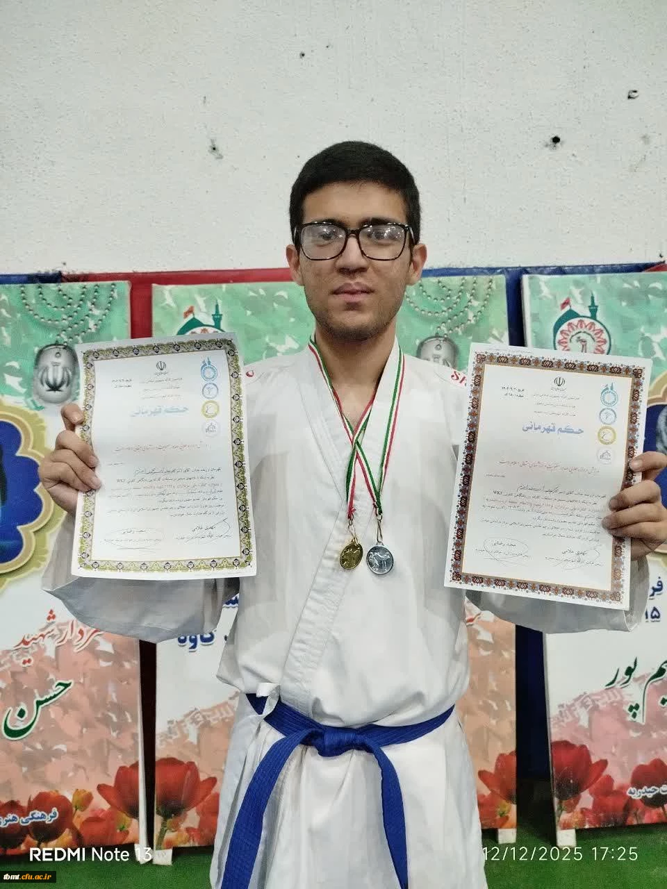 با کمال احترام، موفقیت درخور توجه امیرمحمد باعزم، دانشجوی ورودی ۱۴۰۴ دانشگاه فرهنگیان شهید رجایی تربت حیدریه، در مسابقات استانی کاراته را تبریک عرض می کنیم