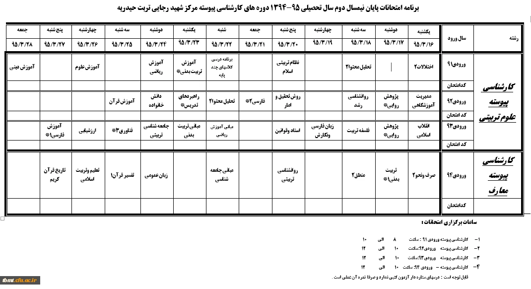 برنامه امتحانی