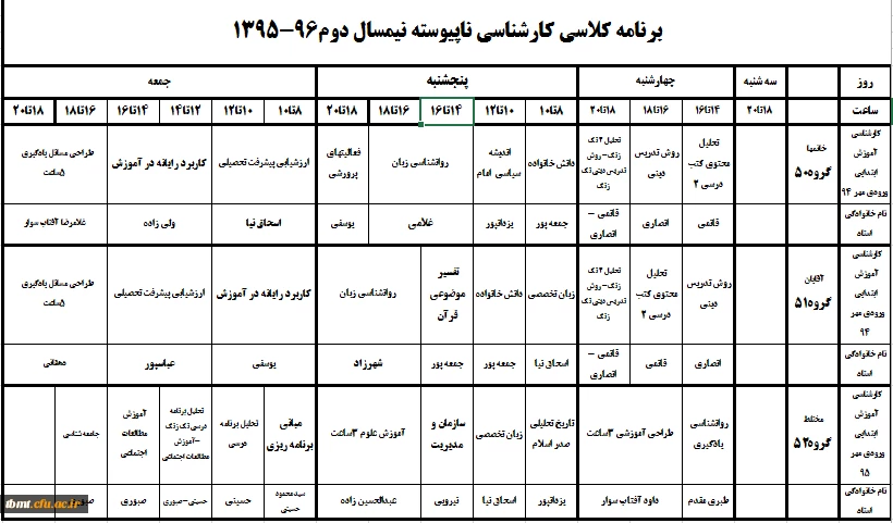 برنامه کلاسی کارشناسی ناپیوسته ترم دوم 96-95