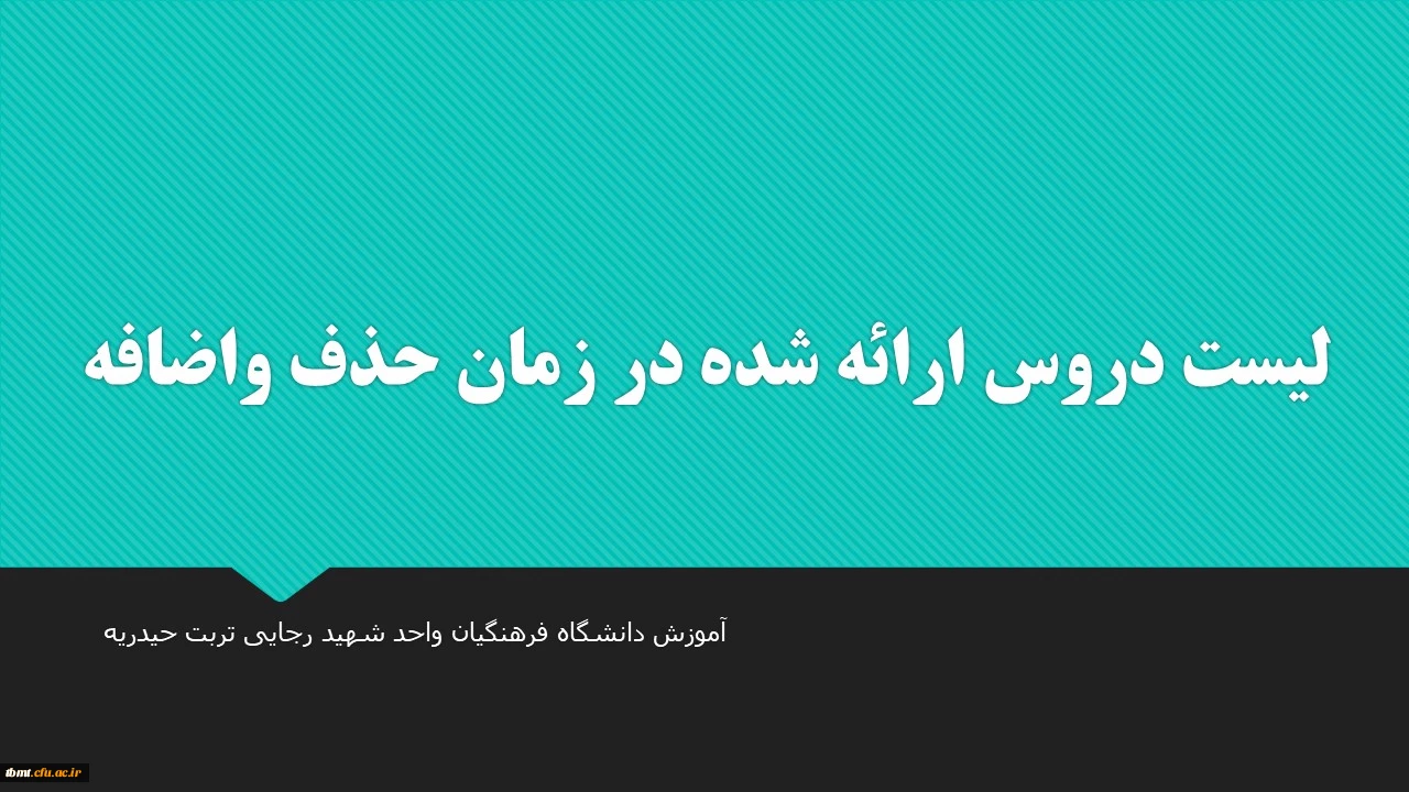 لیست دروس ارائه شده در زمان حذف واضافه دانشجویان واحد شهید رجایی تربت حیدریه 2