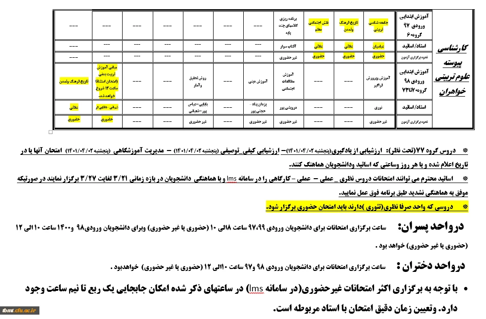 برنامه امتحانات پایان نیمسال دوم سال تحصیلی 1401-1400 دوره های کارشناسی پیوسته مرکز آموزش عالی شهید رجایی تربت حیدریه 4