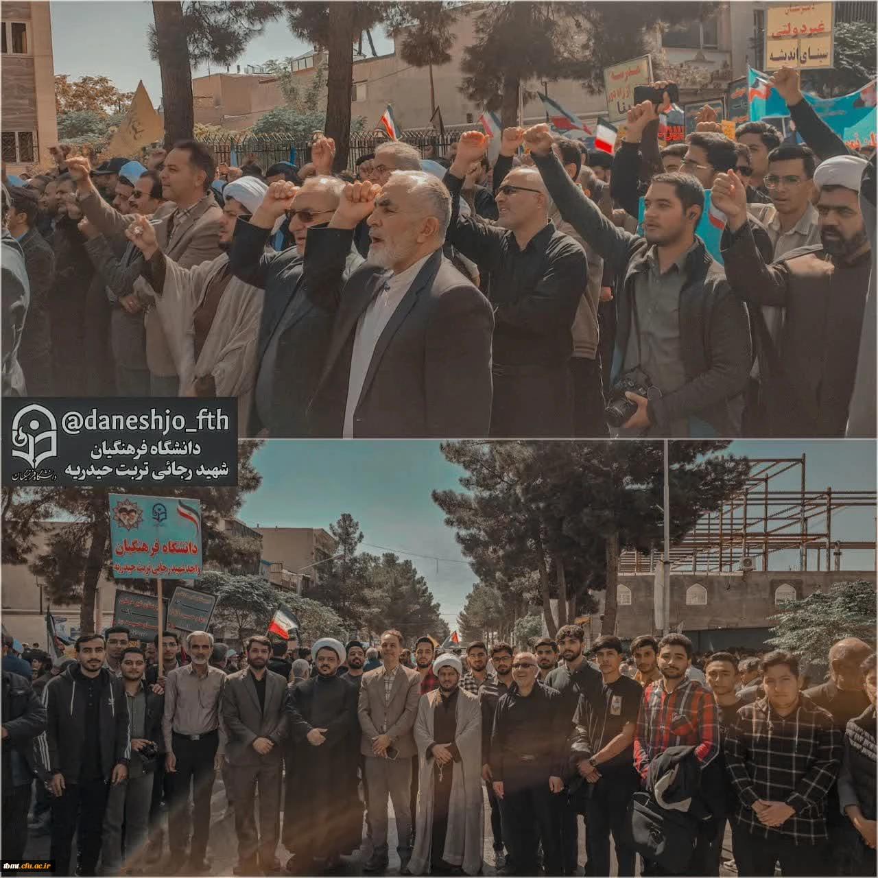 حضور مدیریت، پرسنل و دانشجویان دانشگاه فرهنگیان شهید رجائی تربت حیدریه در اجتماع عظیم مردمان انقلابی شهرستان در پی محکومیت جنایات رژیم صهیونیستی در لبنان. 4