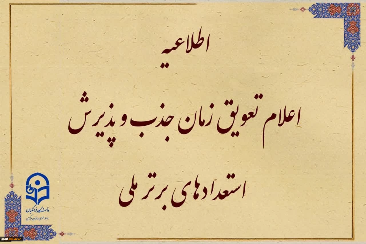 امتیاز دهید : قابل توجه متقاضیان واجد شرایط جذب و پذیرش استعدادهای برتر ملی 2 دوشنبه 14 آبان 1403 ساعت 7:26
